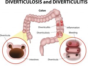 Diverticulosis is a condition where pouches develop along the intestines, colon, and even stomach. The risk of diverticulitis increases with age, with over 50 percent of patients being over 60. Generally, the pouches do not cause any issues. The inflammation of the pouches is what is known as diverticulitis. The condition is accompanied by the abdominal pain and infection.