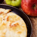 Beat the eggs and add the flour, milk, yogurt, salt and vanilla. Blend until combined, but batter may still be slightly lumpy. Pour over the apples. Bake for 20 minutes. Flip for a dramatic presentation.