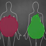 In an apple-shaped body type, the fat is situated around the abdomen, while in a pear-shaped body, the hips are larger than the shoulders.