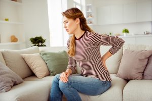 Close up side profile photo beautiful she her lady arms hands hold back spine suffering terrible pain wear jeans denim striped pullover clothes bright comfort flat house living room indoors.New research suggests that widespread pain is linked to a heightened risk of all types of dementia and stroke. The study, published in the journal Regional Anesthesia & Pain Medicine, has found that the association is independent of any influential factors such as age, lifestyle, and general health.